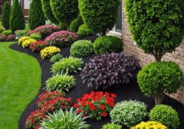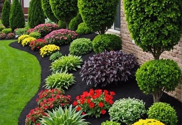 Enhance your garden with vibrant mulch beds and flowers, adding color and texture to your landscape.